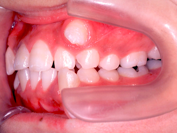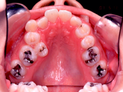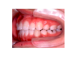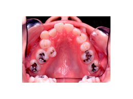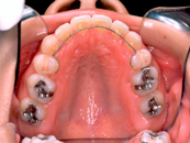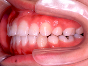 叢生 治療前 左側 いわゆる乱ぐい歯と言われていますが、八重歯もこの分類に属します。簡単に言えば、歯の大きさと顎の大きさにアンバランスがあり、並びきれないものです。形はいろいろなバリエーションがありますが、要は並びきれないので、顎を大きくするか歯を間引くかという治療方針になります。顎の骨を大きくすることもあるのですが、成長が付いて来られないとか、後戻りの危険性が大きいことなどから、歯を抜く方法が一般的です。 叢生 治療前 上顎 この患者さんでは、上下左右の歯を計4本抜きましたが、それでももスペースが足りませんので、さらに顎の形を変えて並べ替えました。 叢生 治療後 抜歯する歯は、変なところに生えていた犬歯ではなく、4番目の歯(=第一小臼歯)です。犬歯を抜くと、顎運動や歯並びの見た目、口元のふくらみがなくなることで老けて見えるなど、いろいろな悪影響があります。従って、できるだけ抜歯は避けたいのです。 叢生 治療後 上顎 歯を抜いたスペースを利用して、残りの歯をきれいに並べ替えてゆきます。この患者さんの場合は、抜いたスペースはほとんど余りませんので、意外に早く治療が終わりました。 叢生 Crowding 八重歯に代表される、歯がガタガタして乱ぐい状態になっているケースです。 上顎前突 上の歯が前に出ているケースですが、下顎が後ろに引けていることもあります。 下顎前突 いわゆる受け口といわています。 開咬 上下の歯に隙間があり、そこだけ咬んでいないケースです。発音にも影響があります。 顎変形症 骨のずれが大きく、手術を併用しなければ治せないケースです。健康保険が効きます。