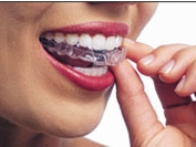 - 見えにくい装置の他にも、透明なプラスチックシートを利用する装置(写真はインビザラインです。他にもクリアアライナーなどといった商品があります)があります。これらは装置が薄く、しかも透明なシートでできているので、つけてしまえばほとんど分からない装置です。但し何個も(症例によっては30個くらい)次々と交換しなければならないとか、一日に20時間くらい使用してもらわなければならないとか、歯を抜くような難しいケースはうまく直せないなどの欠点もあります。